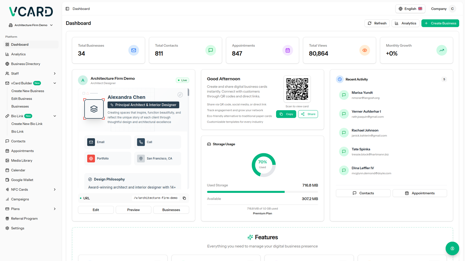 It allows users to build modern digital business cards and smart bio link pages that include contact details, social profiles, and important links, all accessible through a single shareable link or QR code. With 40 industry‑specific vCard templates and 15 dynamic bio link themes, users can quickly create a professional digital presence tailored to their brand or industry.